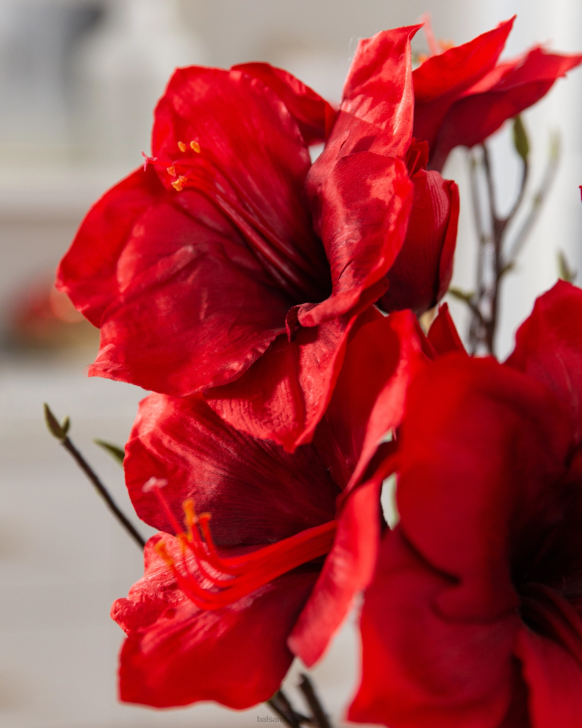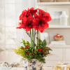 Take the holiday cheer to the next level with vibrant florals. Bright amaryllis blooms make an elegant centerpiece or a bold backdrop for your celebrations.