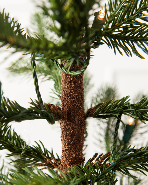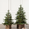 Create a charming farmhouse look with mini fir Christmas trees. Set in wooden crates, they’re an easy way to add warm ambience anywhere.