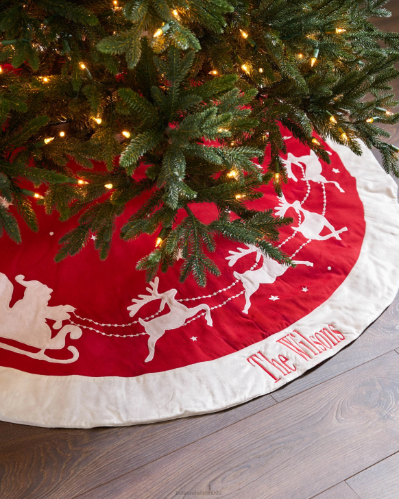 Give your Christmas tree a vibrant finishing touch with a hand-embroidered tree skirt. Pair with traditional or Nordic-inspired accents to complete your festive holiday display.