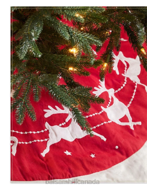 Give your Christmas tree a vibrant finishing touch with a hand-embroidered tree skirt. Pair with traditional or Nordic-inspired accents to complete your festive holiday display.