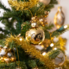 - Gilded Glory features garland crafted from gold tinsel accented with white, silver, and gold plastic beads