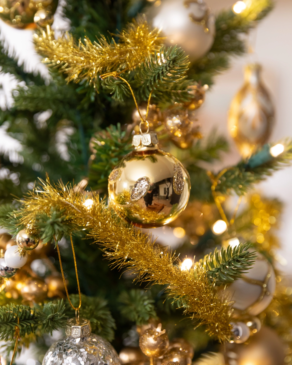 - Gilded Glory features a gold glittered star tree topper
