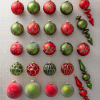 - Feature round and finial ornaments with sugared finish and hand-painted glitter