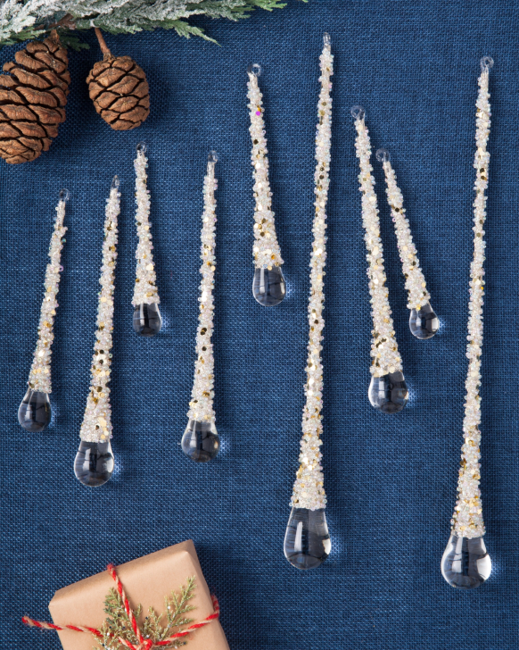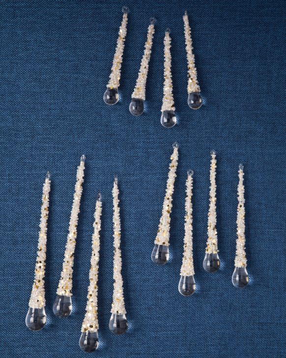 Resembling delicate icicles glistening on a winter evening, our teardrop ornaments add a captivating finish to your Christmas display. Each glass ornament is embellished with glitter and pearlescent beads that reflect light, providing beautiful sparkle to Christmas trees and hanging garlands.