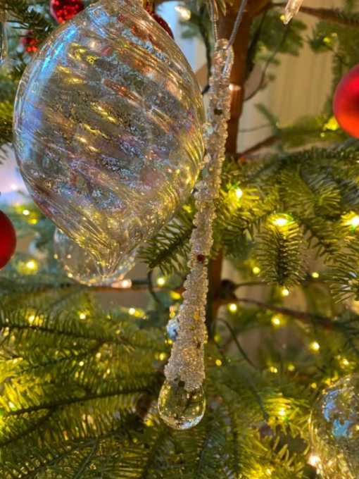 Resembling delicate icicles glistening on a winter evening, our teardrop ornaments add a captivating finish to your Christmas display. Each glass ornament is embellished with glitter and pearlescent beads that reflect light, providing beautiful sparkle to Christmas trees and hanging garlands.