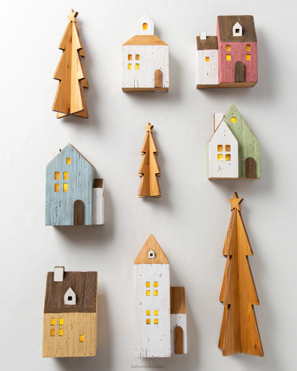 Balsam Hill Lit Farmhouse Wooden VillageDecoration RD2V216
