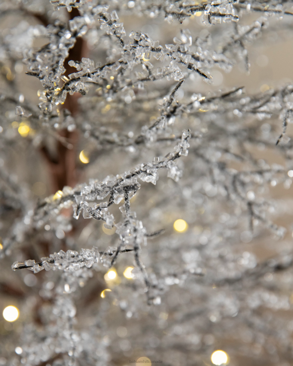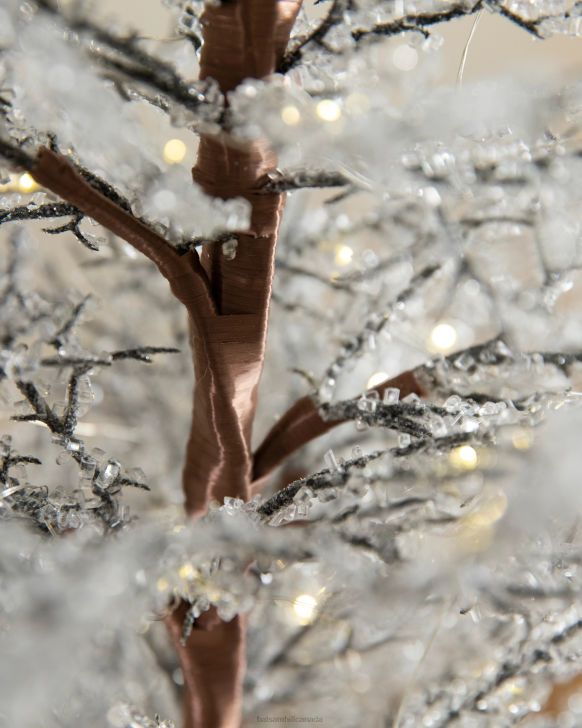 Capture the beautiful look of winter forests. This icy accent tree sparkles with the glow of fairy lights to create an enchanting scene for your entryways or mantels.