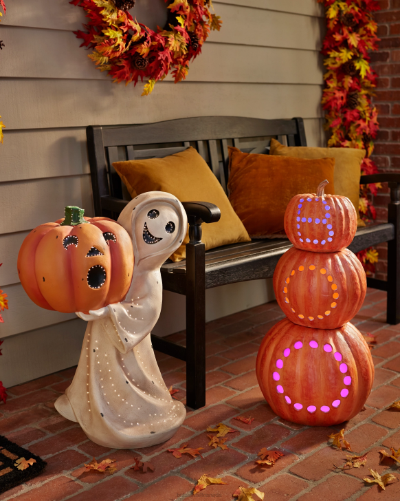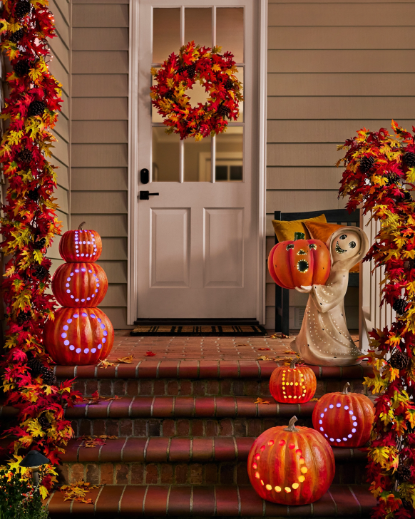 Carve out a hearty Halloween greeting for trick-or-treaters and guests of all ages. Color-changing lights and effects create a bright and festive welcome on your porch, patio, or pathways.
