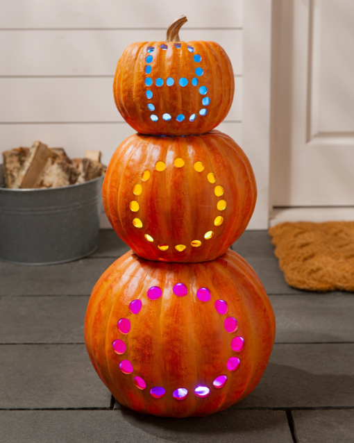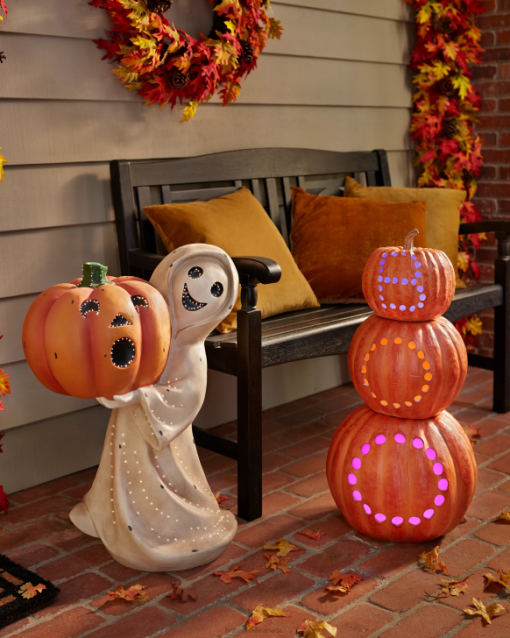 Carve out a hearty Halloween greeting for trick-or-treaters and guests of all ages. Color-changing lights and effects create a bright and festive welcome on your porch, patio, or pathways.