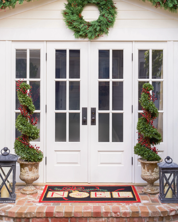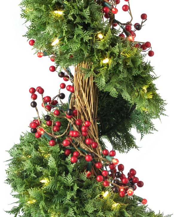 - Red berry garland on topiary requires 3 AA batteries; not included