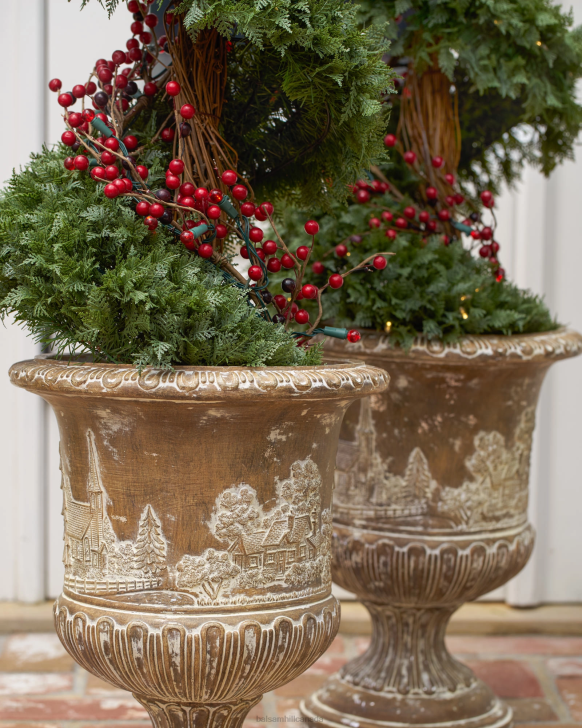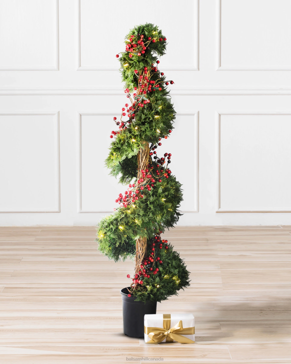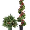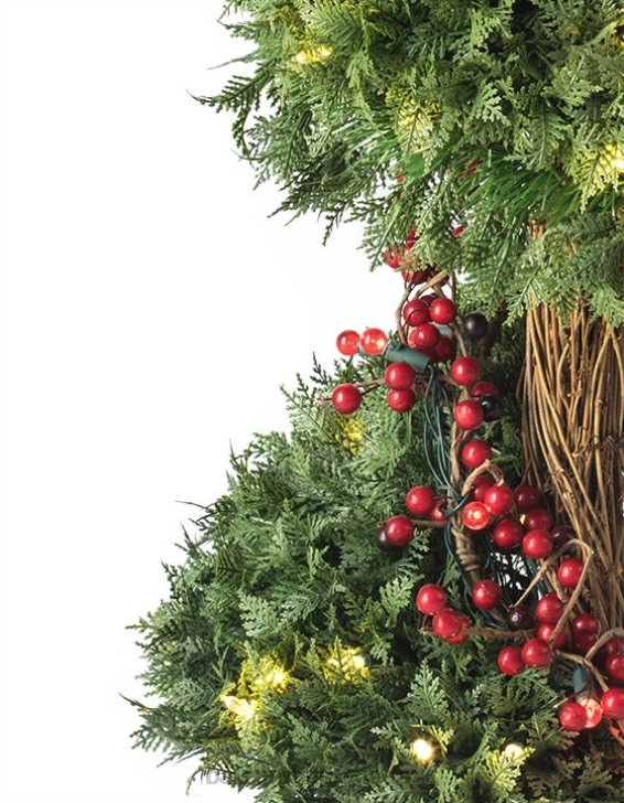 Enrich your spaces with the natural charm of lifelike cypress greenery. Pre-lit with clear lights and accented with red berries, this matching pair is a vibrant addition to any room.