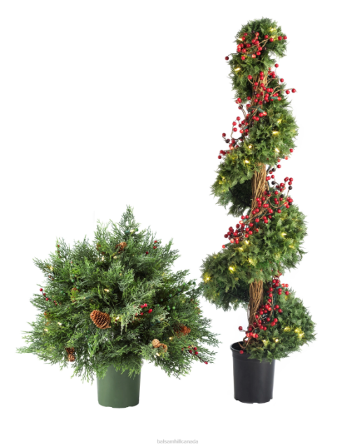 Enrich your spaces with the natural charm of lifelike cypress greenery. Pre-lit with clear lights and accented with red berries, this matching pair is a vibrant addition to any room.
