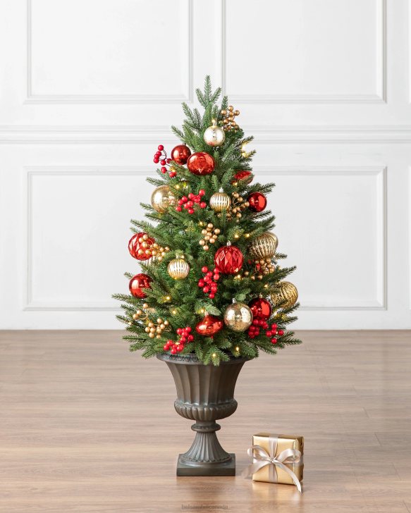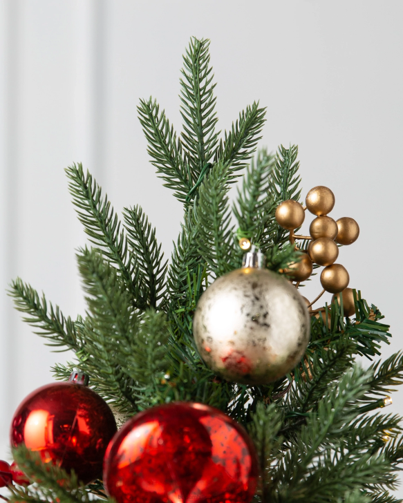 - All products in this collection feature faux cypress foliage decorated with shatter-resistant ornaments, red berries, and natural pinecones