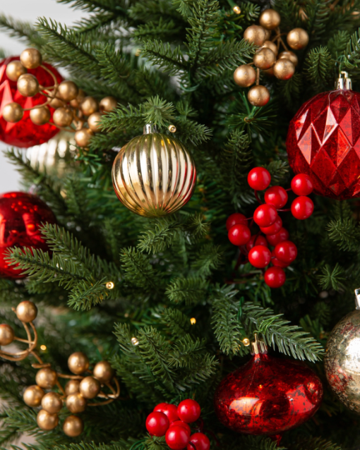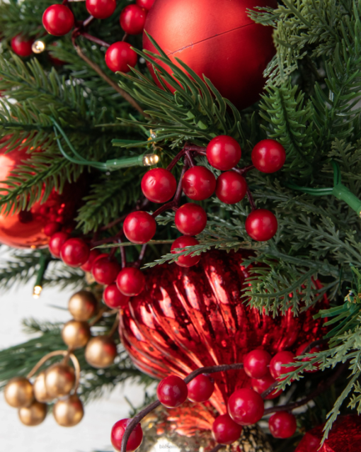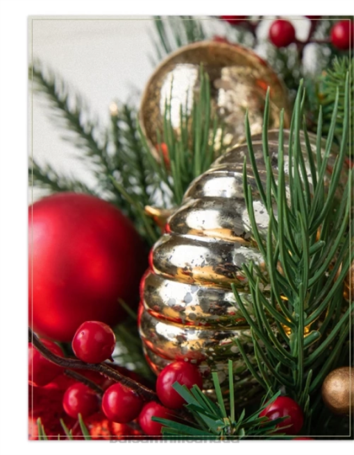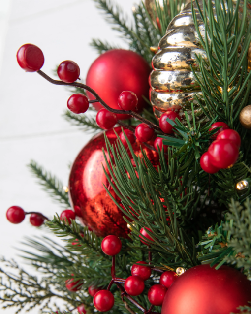 - All products in this collection feature faux cypress foliage decorated with shatter-resistant ornaments, red berries, and natural pinecones