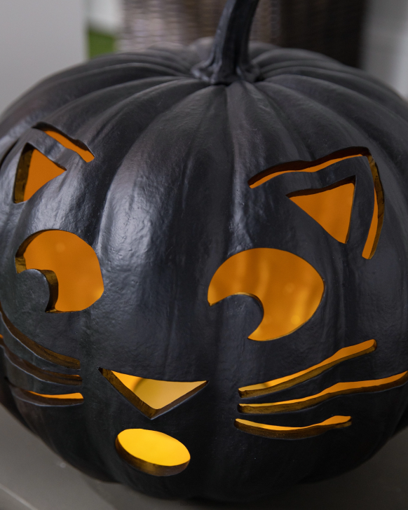 Excite neighbors and trick-or-treaters with a friendly feline face. Set on both sides of an entryway for twice the whimsy.