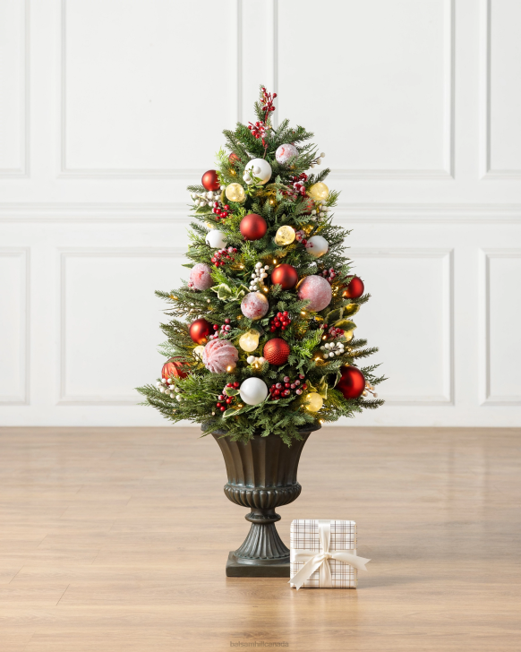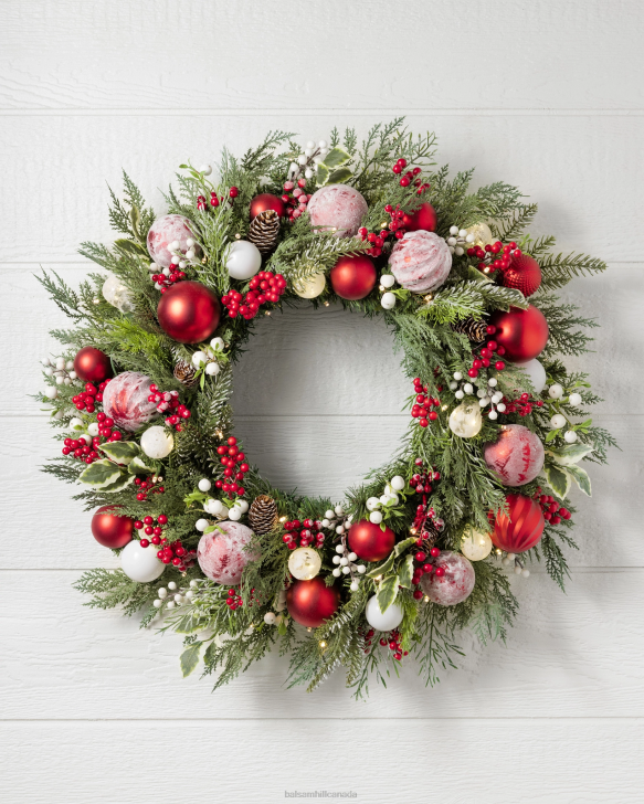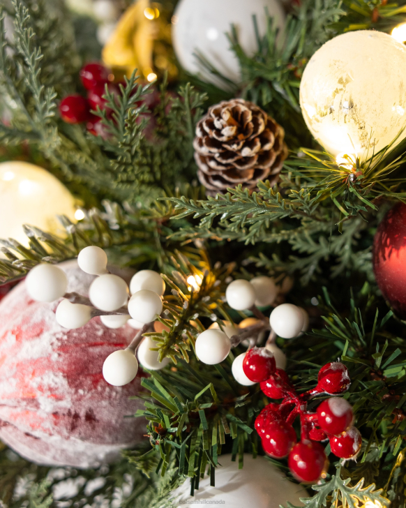 - All products in this collection feature red and white berries, shatter-resistant ornaments in varying patterns and finishes, and holly leaves on lifelike fir foliage with cypress tips.