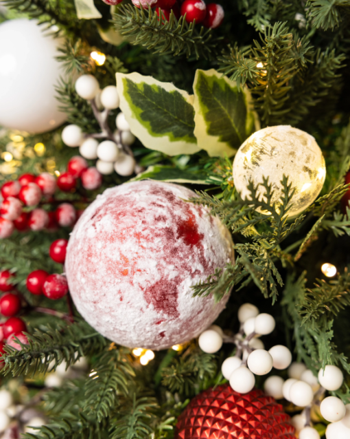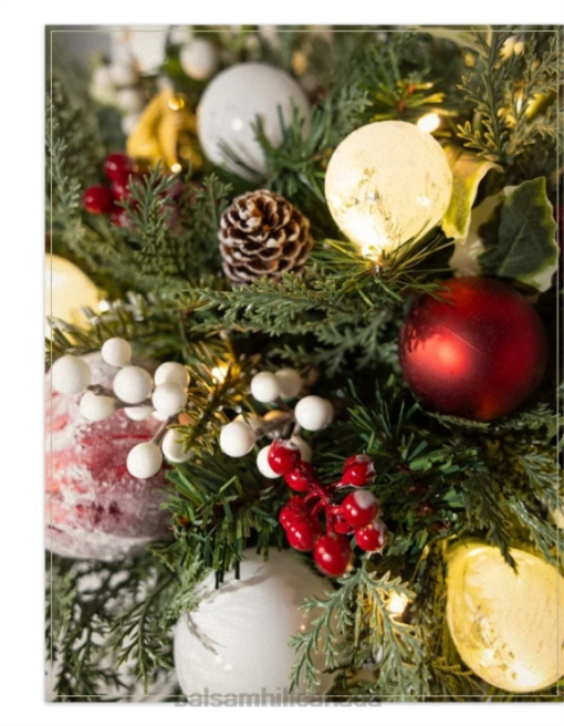 - All products in this collection feature red and white berries, shatter-resistant ornaments in varying patterns and finishes, and holly leaves on lifelike fir foliage with cypress tips.