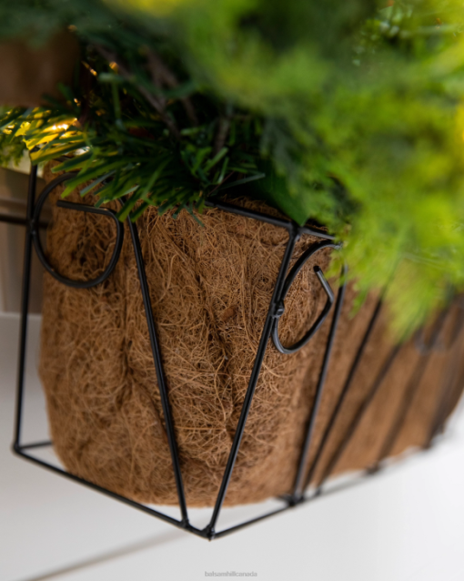 - Set with coconut coir in a iron planter measuring 18” long x 4” wide x 5” high