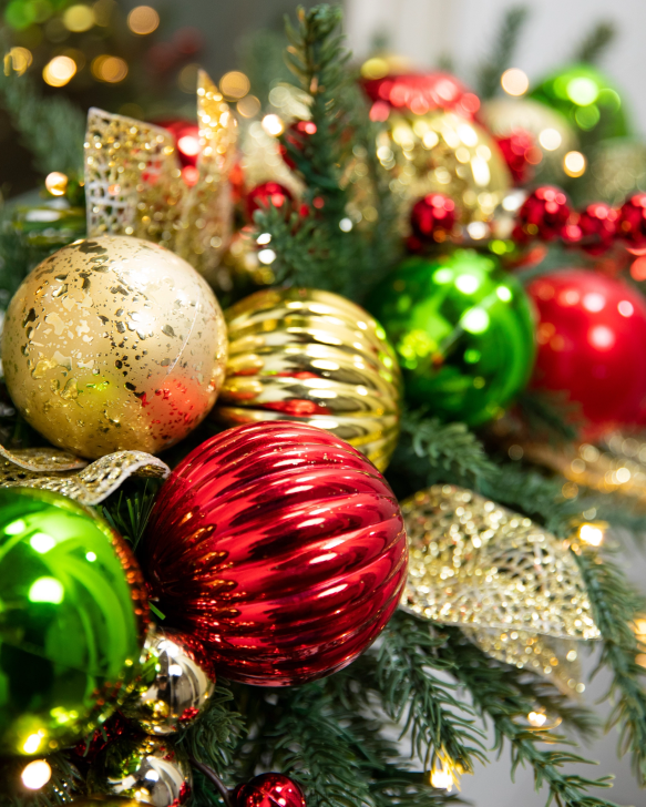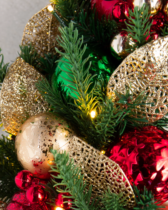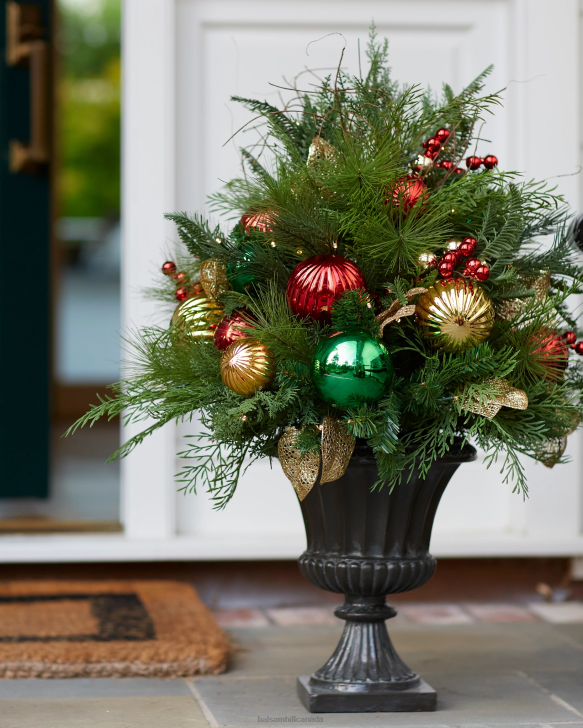Add a splash of dazzling Christmas color to your patios, porches, and entryways. Loaded with ornaments and lights, this foliage collection is bursting with the festive spirit of the season.