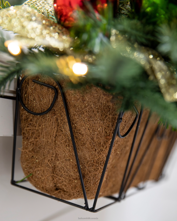 - Set with coconut fiber in a metal frame measuring 16” long x 16” wide x 18” high