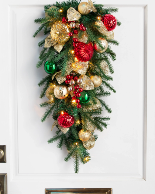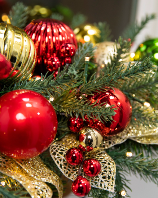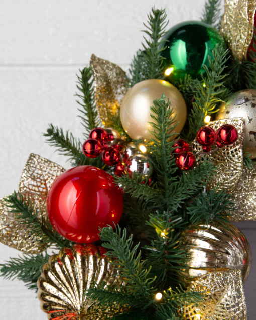 Add a splash of dazzling Christmas color to your patios, porches, and entryways. Loaded with ornaments and lights, this foliage collection is bursting with the festive spirit of the season.