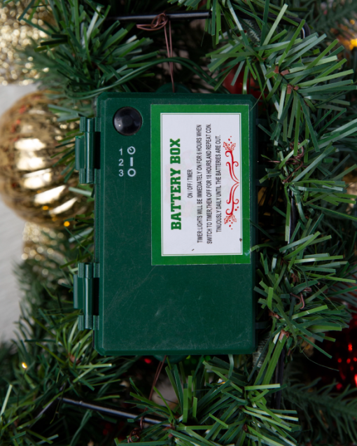 - Battery-operated lights include a built-in timer; 6 hours on, 18 hours off