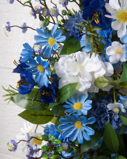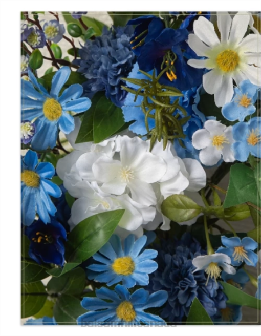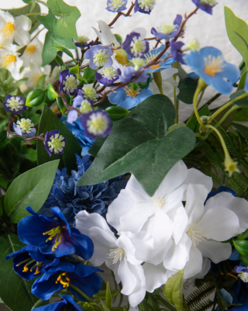 - All products in this collection feature an array of daisies, forget-me-nots, lisianthus, baby’s breath, and ivy leaves.