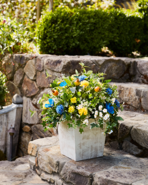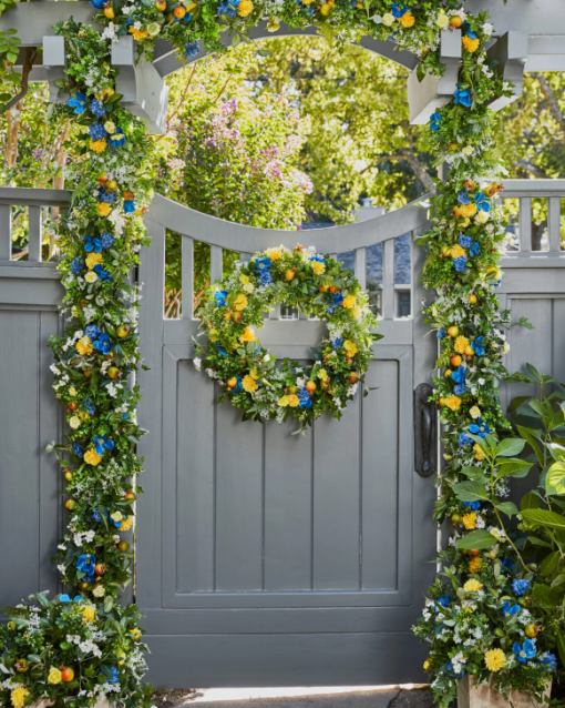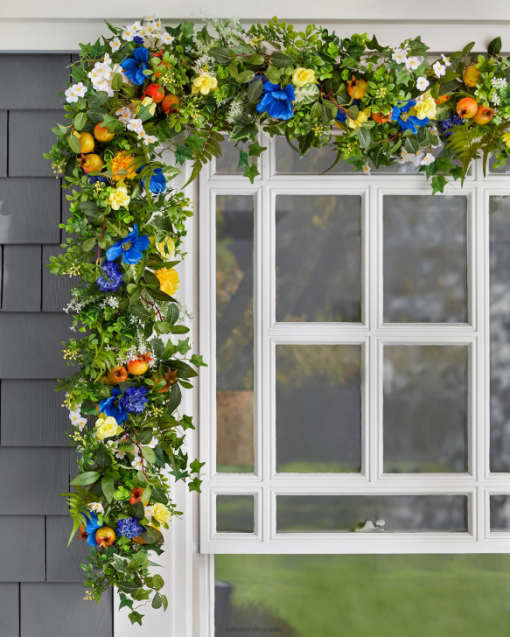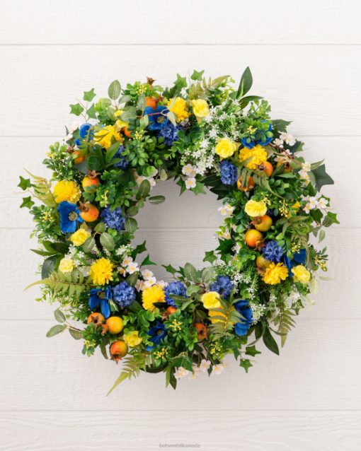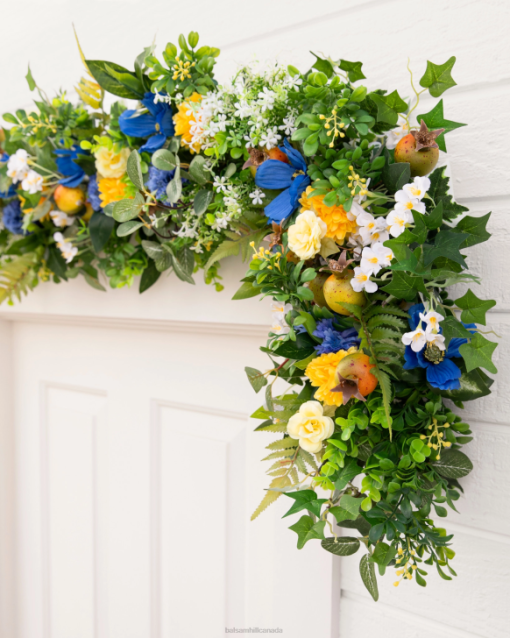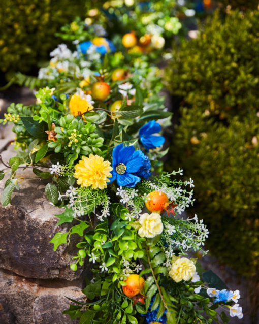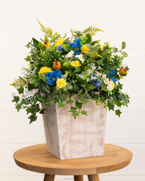 - All products in this collection feature an array of faux flowers, including: gerberas, cornflowers, wildflowers, ivy, pomegranates, and assorted leaves