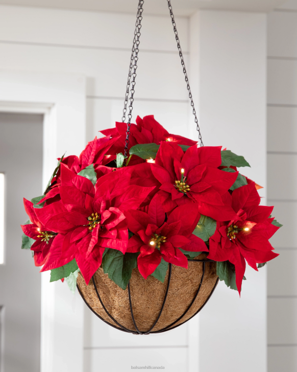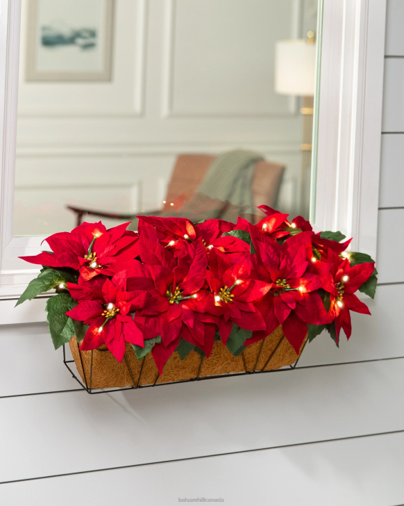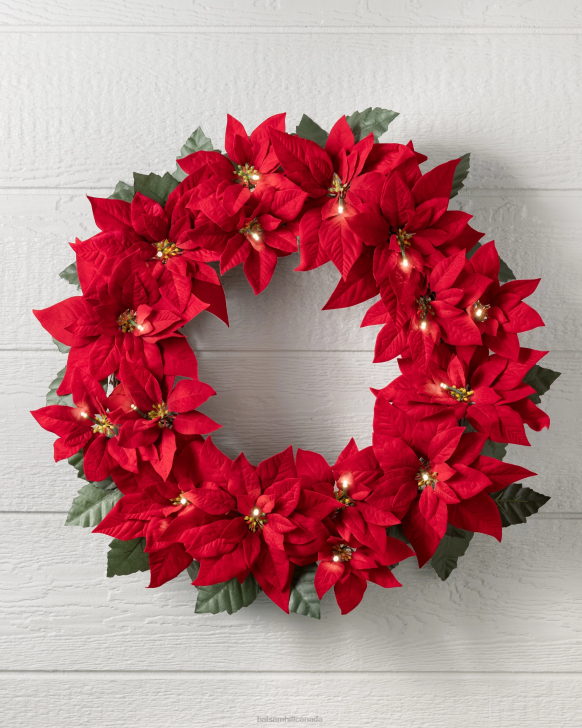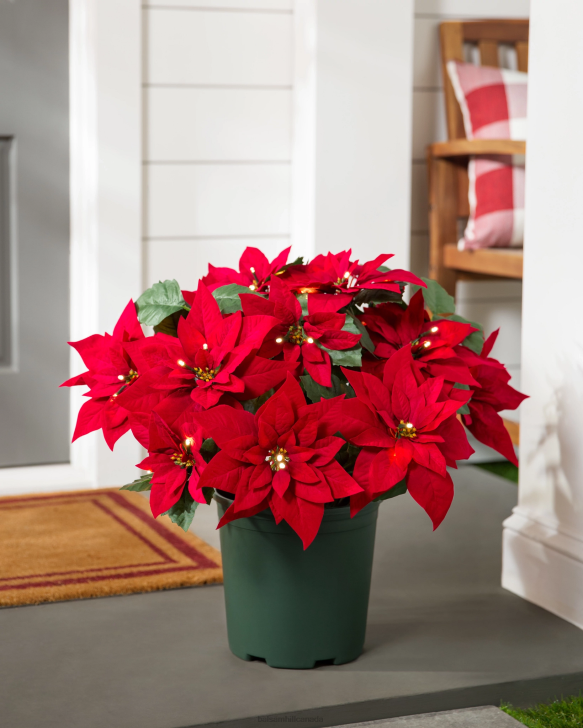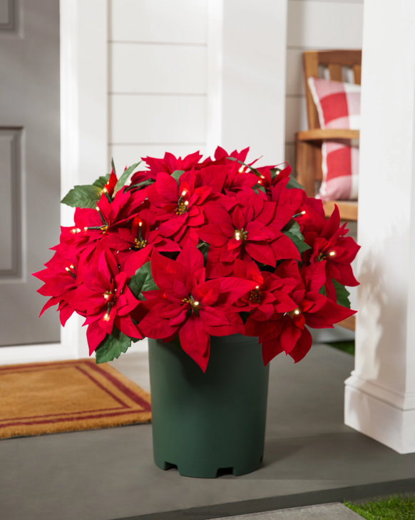 Balsam Hill Red Outdoor Lit Poinsettia Celebration FoliageDecoration RD2V105