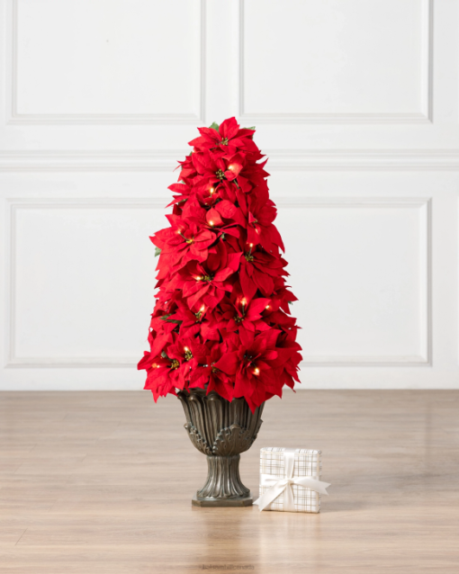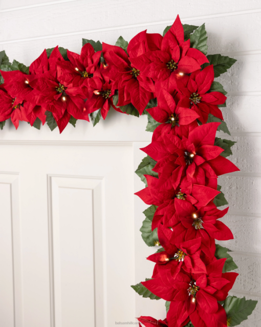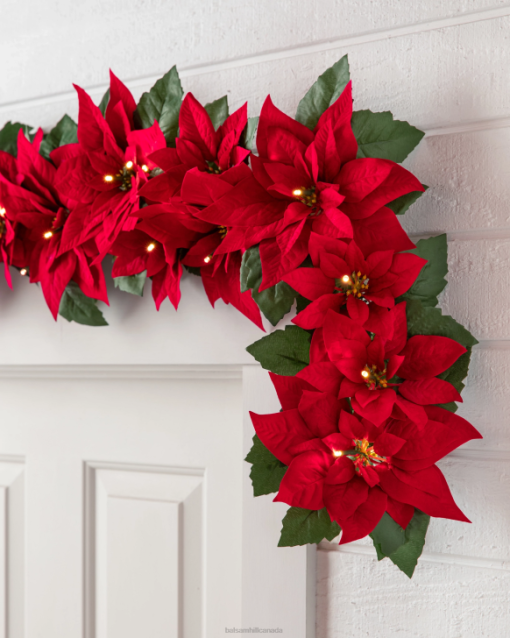 Balsam Hill Red Outdoor Lit Poinsettia Celebration FoliageDecoration RD2V105