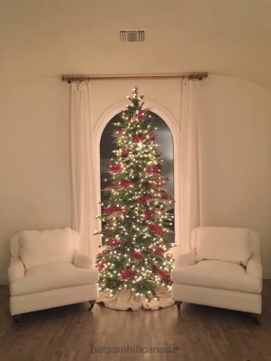 Fill your home with countryside charm. Crafted with an abundance of lifelike foliage, our Red Spruce Slim tree exudes all the rustic beauty and natural grace of its namesake. Its slender silhouette makes it a lovely choice for entryways or hallways, while its long branches and layered structure are perfect for displaying your favorite ornaments.