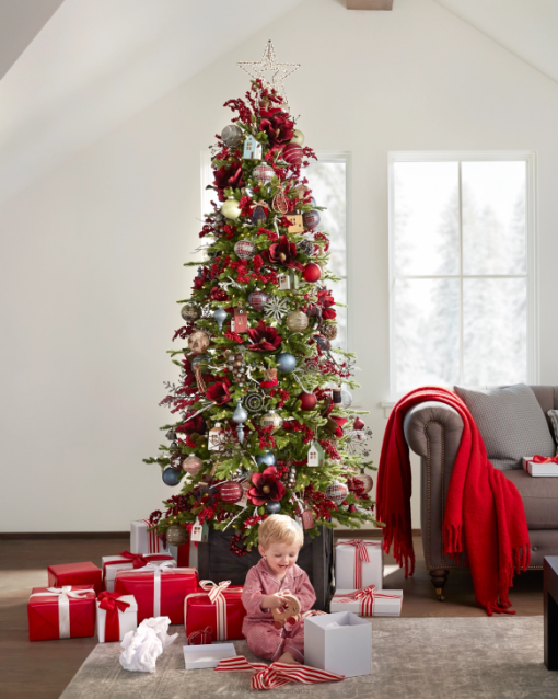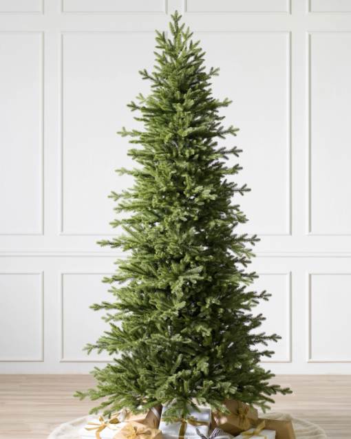 Fill your home with countryside charm. Crafted with an abundance of lifelike foliage, our Red Spruce Slim tree exudes all the rustic beauty and natural grace of its namesake. Its slender silhouette makes it a lovely choice for entryways or hallways, while its long branches and layered structure are perfect for displaying your favorite ornaments.
