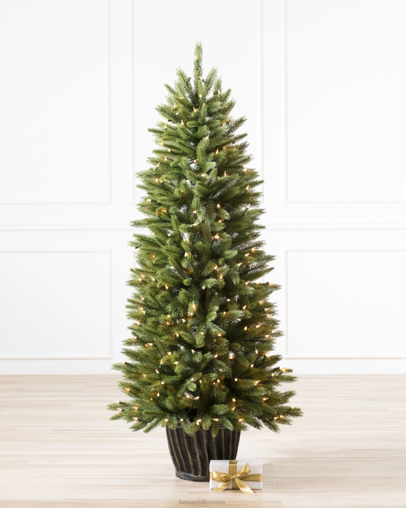 Celebrate the season with a charming potted Christmas tree. Inspired by the Rutherford township in the Napa Valley, this wine country fir is carefully crafted with attention to every detail. Tapered light-green needles with extra long, narrow and round tips add depth and realism, while energy-saving lights shine through the foliage for a warm welcome.