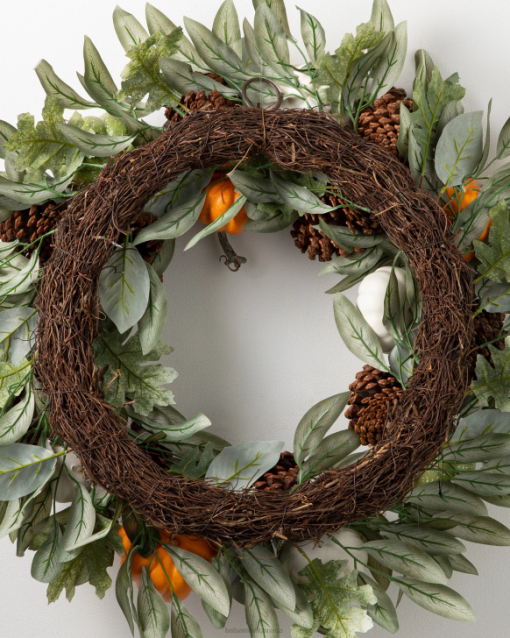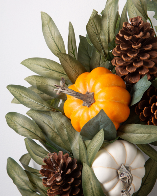 - All products in this collection feature pumpkins, pinecones, and eucalyptus leaves